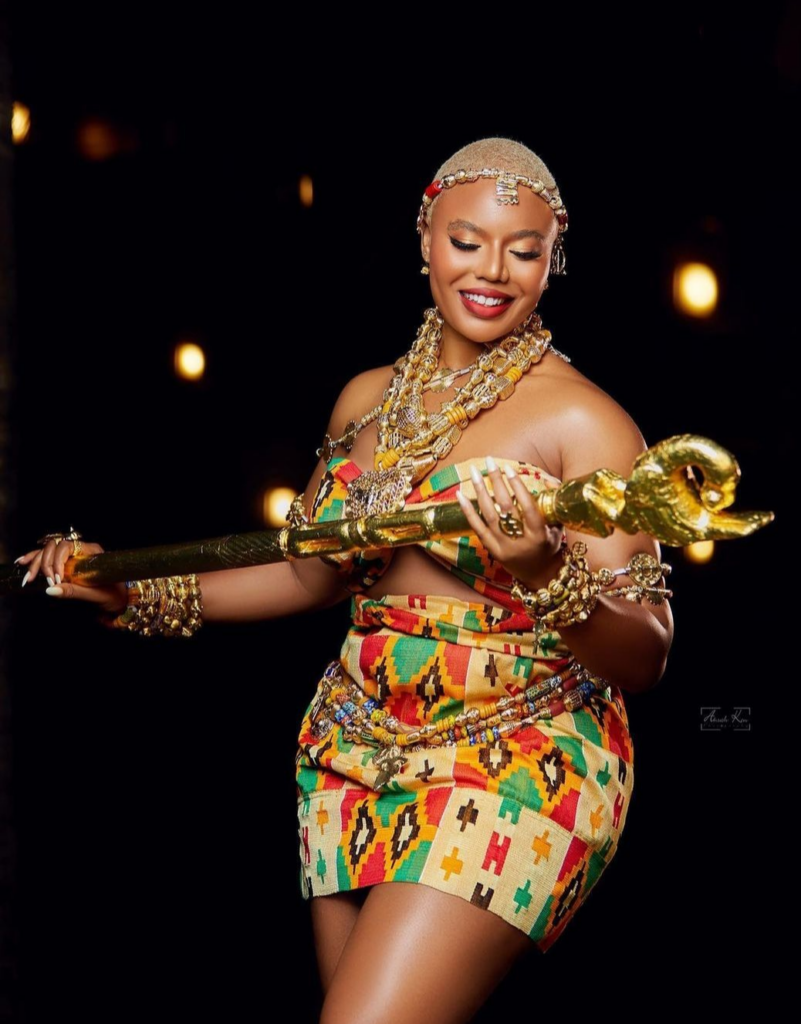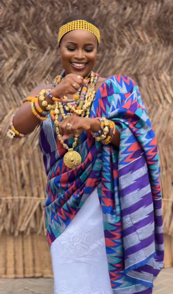 Certainly! The Ghanaian celebrity Joselyn who chooses to embrace her natural beauty and hair texture, can resonate with the sentiment of wearing Ghanaian traditional Kente cloth. Just as Kente cloth represents a celebration of heritage and cultural pride, embracing nature is often a journey of self-acceptance, empowerment, and connection to one’s roots. Both acts serve as statements of identity, promoting a sense of belonging, confidence, and unity within a community that values authenticity and cultural expression.