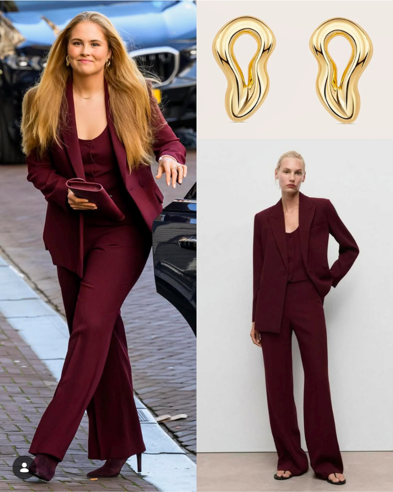 Together, the deep burgundy suit and the fluid gold accents tell a story of a Princess who is emotionally present. Her style does not demand distance; it invites connection.