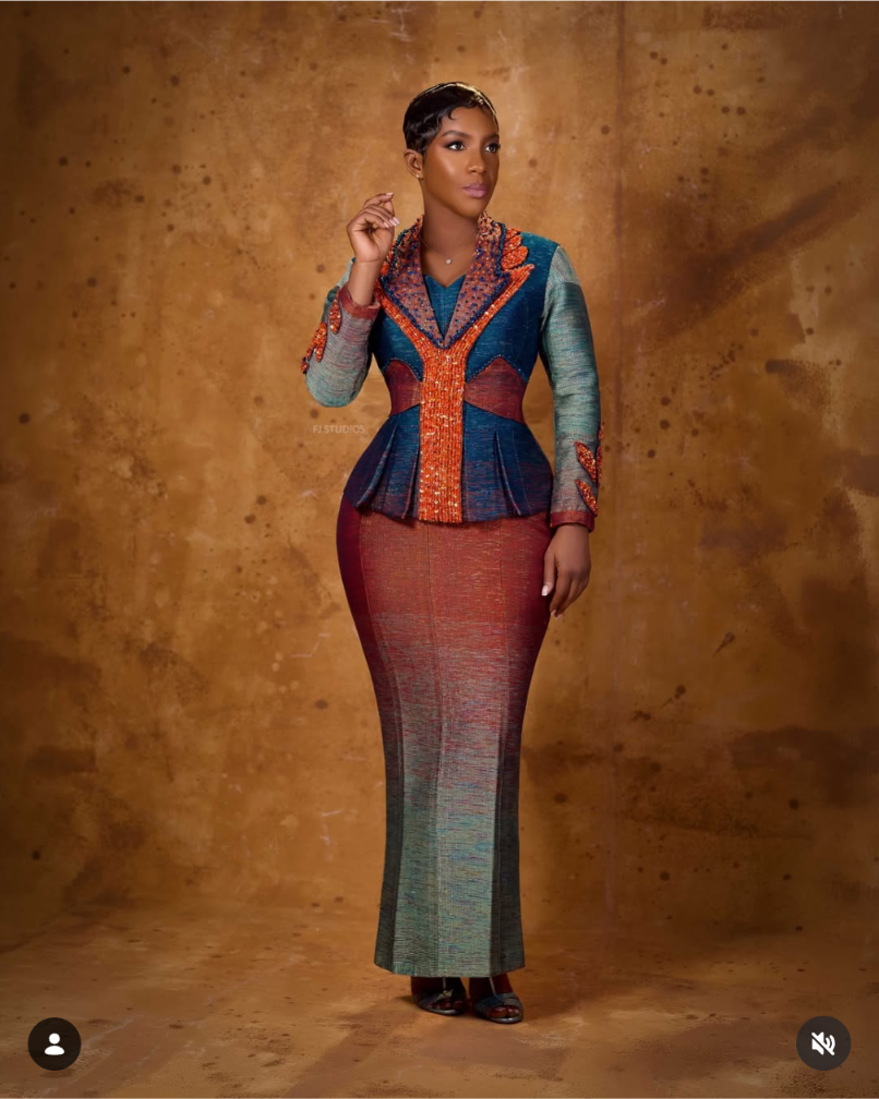 - Masterful Tailoring: Our designs, like the stunning structured peplum ensemble featured here, utilize intricate textures and bold, iridescent fabrics to create a regal look.