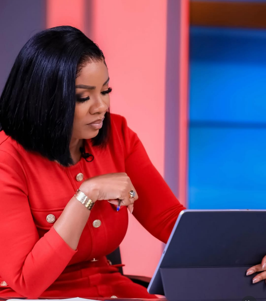 [Scene: Serwaa Amihere, the renowned broadcast journalist, welcomes Gwen Addo, CEO of Hair Senta and author of the acclaimed book “Direction,” to the set. The stage is set for a compelling dialogue about the vision for Ghana’s future.]