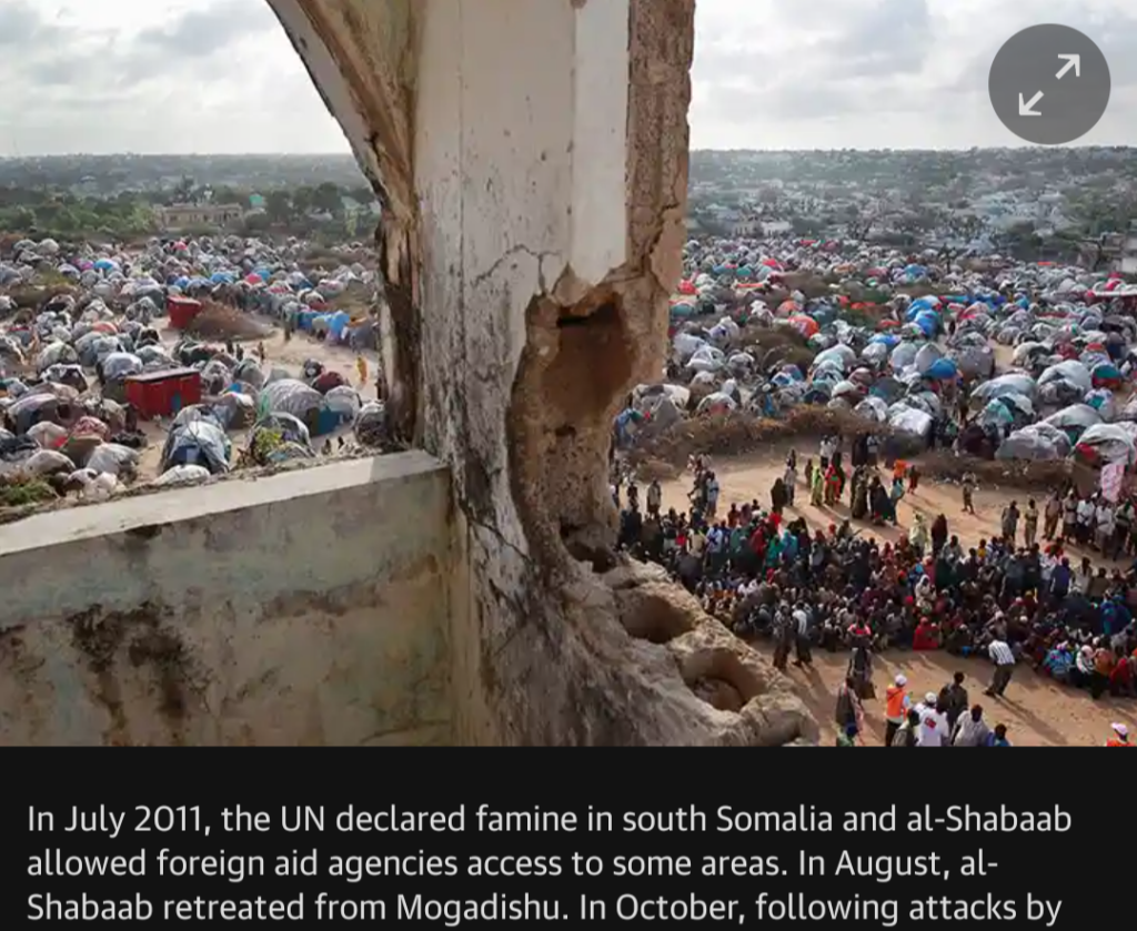 In July 2011, the UN declared famine in south Somalia and al-Shabaab allowed foreign aid agencies access to some areas. In August, al-Shabaab retreated from Mogadishu. In October, following attacks by suspected al-Shabaab insurgents in Kenyan resorts, Kenyan troops entered Somalia. More than 100 people were killed in a Mogadishu suicide bomb attack. The following month, al-Shabaab militants who control areas of south and central Somalia announced they were banning 16 aid agencies from the region. These areas were hardest hit by the famine. In December, UN secretary-general Ban Ki-moon flew to Mogadishu.