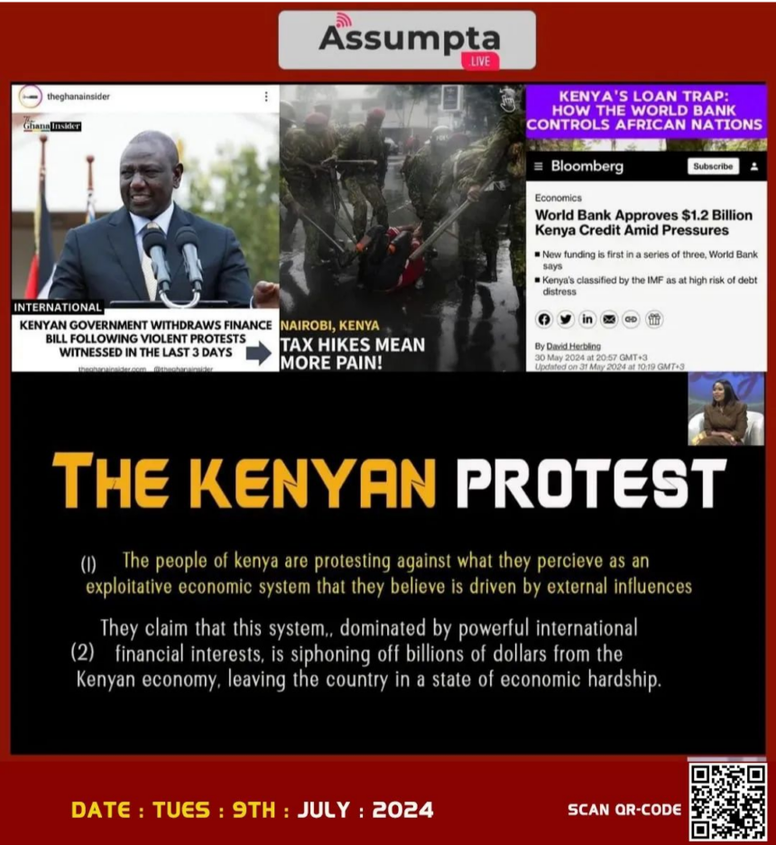 Content: (1) The people of kenya are protesting against what they perceive as an exploitative economic system that they believe is driven by external influences