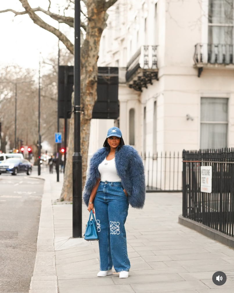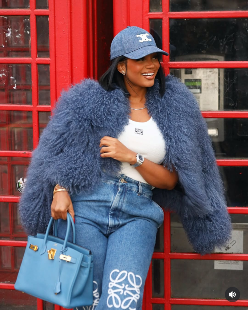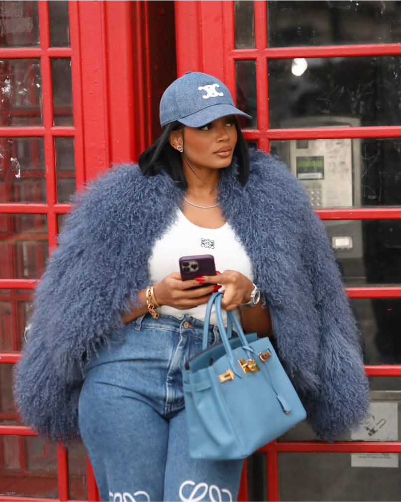 She’s seen here stepping out in a light blue wool jacket by @niamaelondon – a standout piece from their luxury outerwear collection.